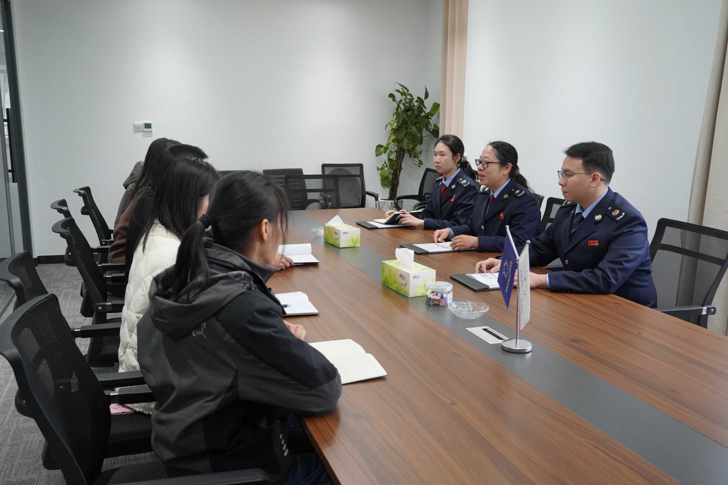 图为税务部门工作人员与企业人员进行深入交流