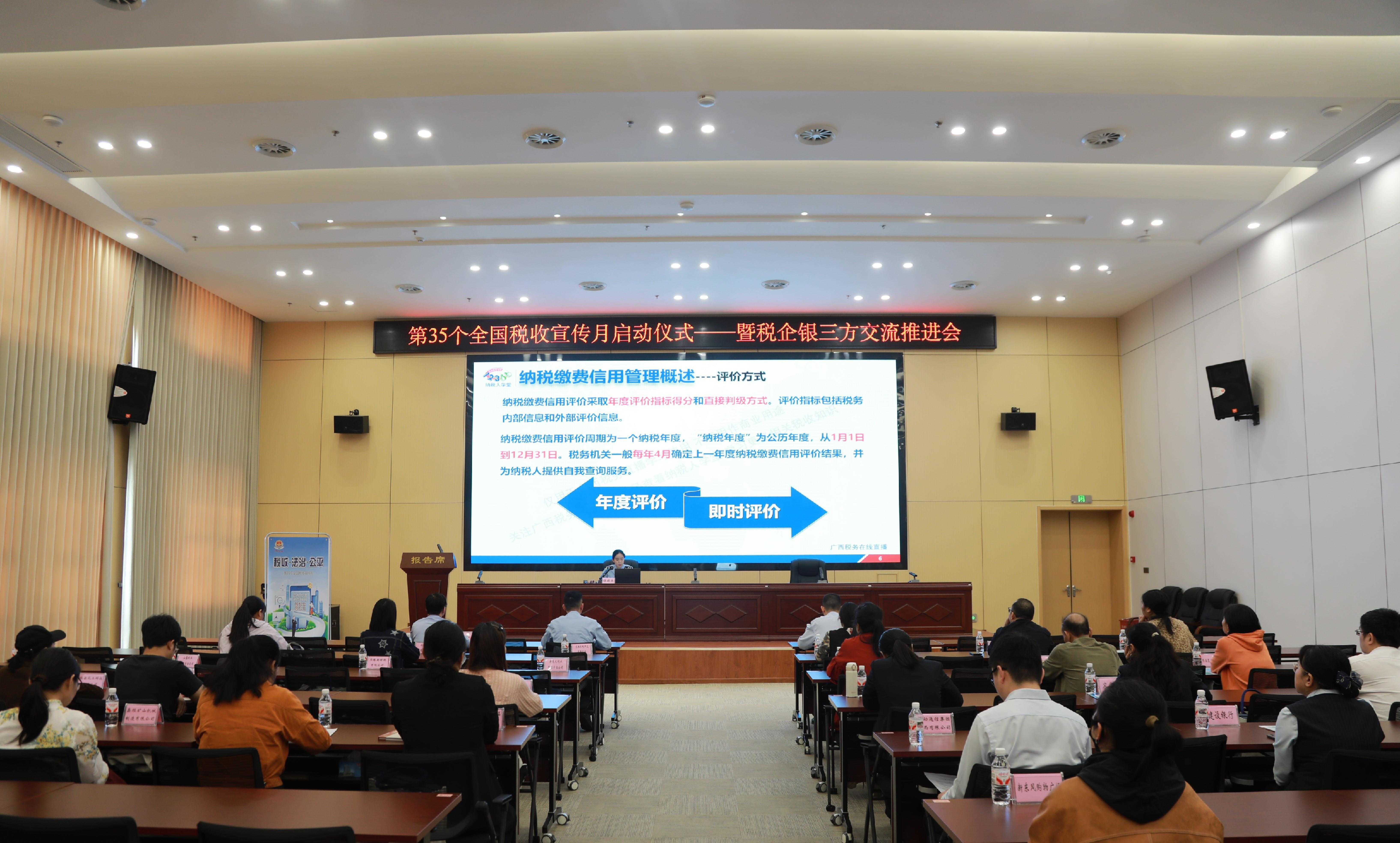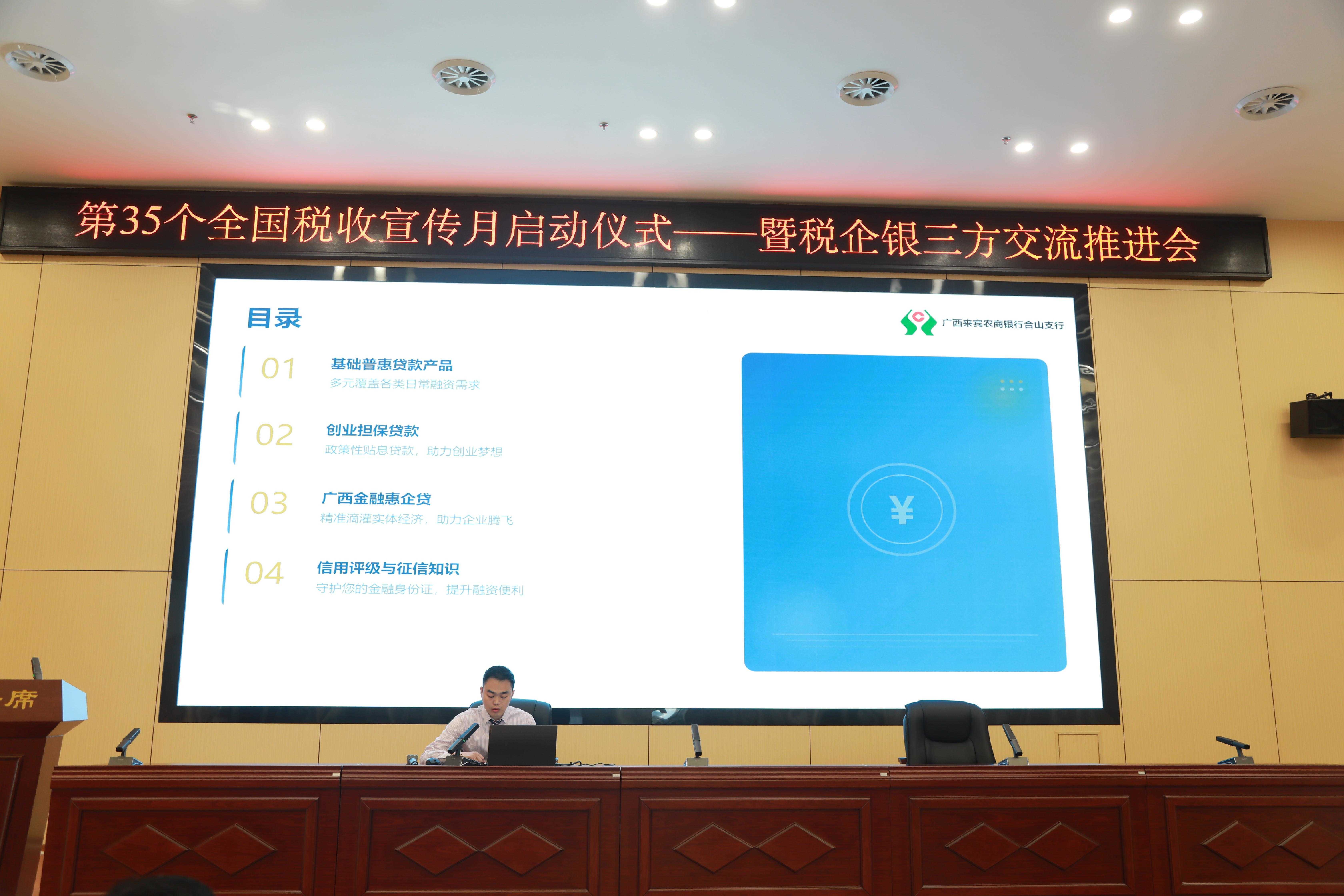 围绕“税收·法治·公平”主题,合山市税务局将税企银三方交流作为宣传月开篇活动,邀请30余户重点行业和金融机构的企业代表参加。活动现场,税务部门业务骨干围绕增值税法、纳税缴费信用评价等内容进行深入浅出地讲解,帮助企业准确掌握最新税收法规,提升合规经营意识。随后,农商银行、农业银行分别推介了针对重点行业企业和诚信纳税客户的专属金融信贷产品。