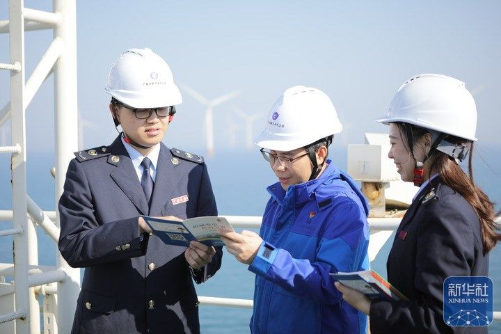 防城港市税务干部到防城港海上示范风电项目基地,了解企业运营情况,辅导最新的税收优惠政策。