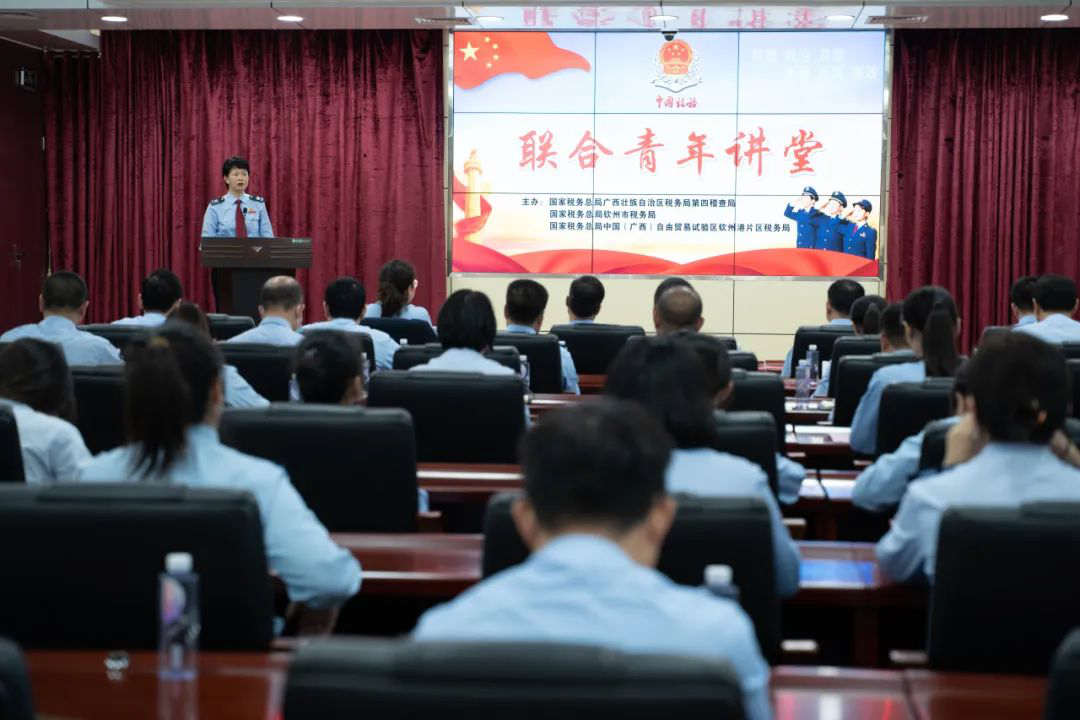 在活动中,广西税务局第四稽查局、钦州市税务局和广西自贸试验区钦州港片区税务局的青年党员代表分别进行“税务青年心向党”主题宣讲,展示了新时代税务青年干部红心向党,贡献青春力量,建功新时代的良好精神风貌。活动中,广西税务局第四稽查局业务骨干作了题为《限售股的稽查实践和管查联动》的专题授课,开启了“联合青年讲堂”的第一课。
