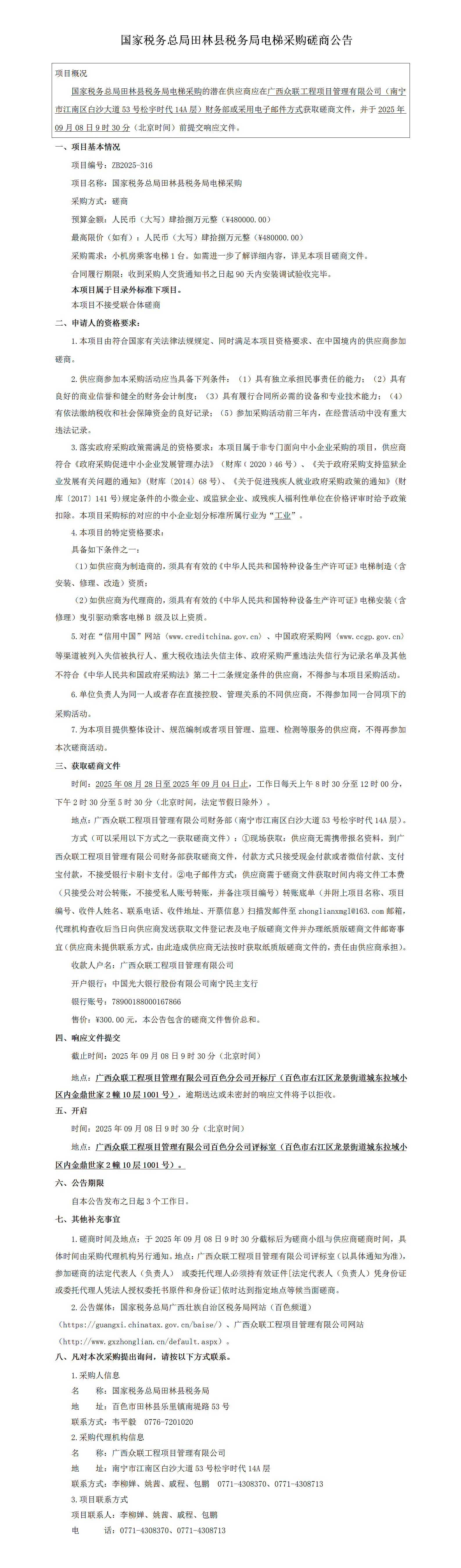 【田林县】国家税务总局田林县税务局电梯采购磋商公告