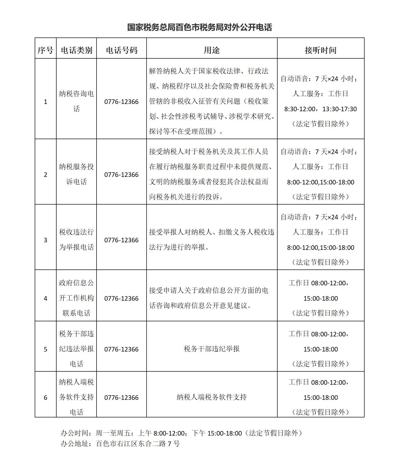 国家税务总局百色市税务局对外公开电话