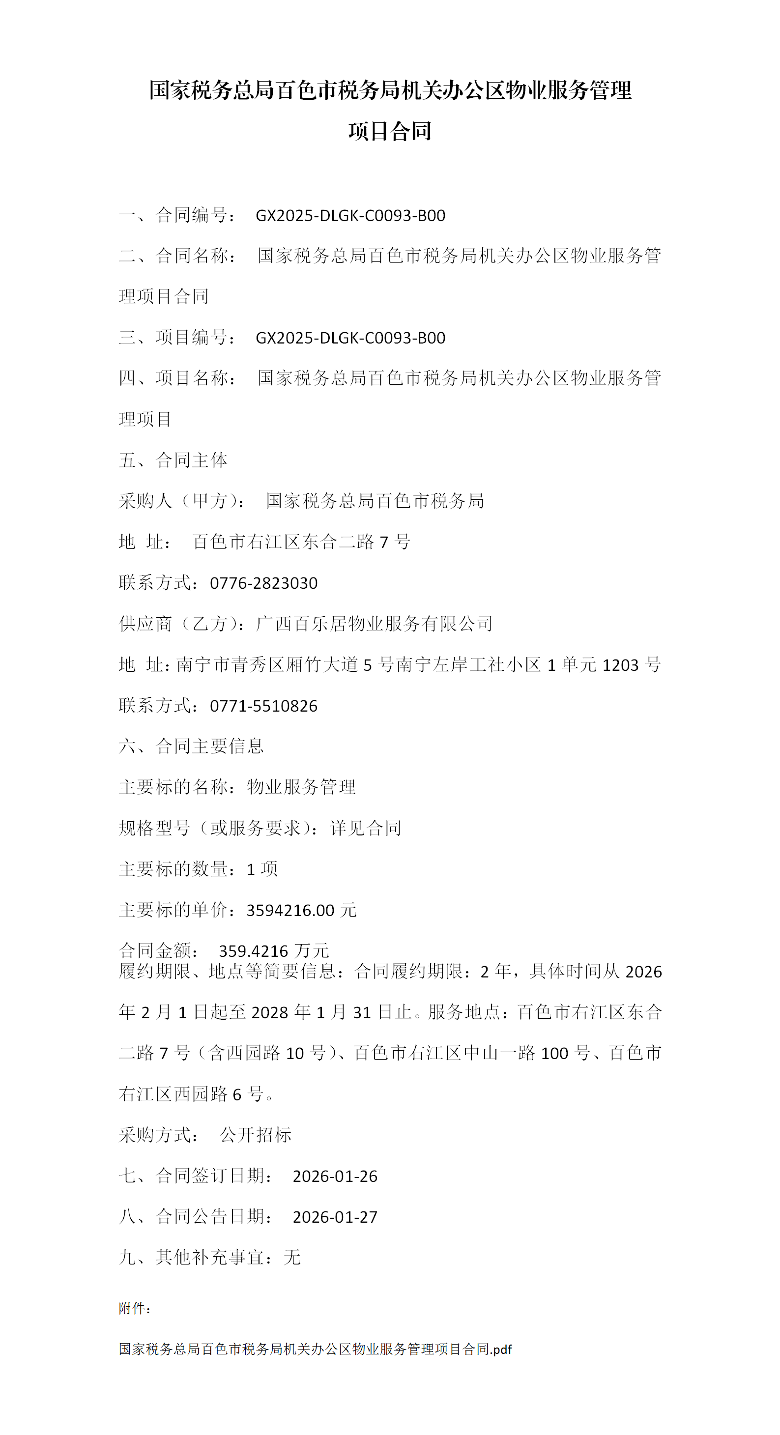 国家税务总局百色市税务局机关办公区物业服务管理项目合同.pdf