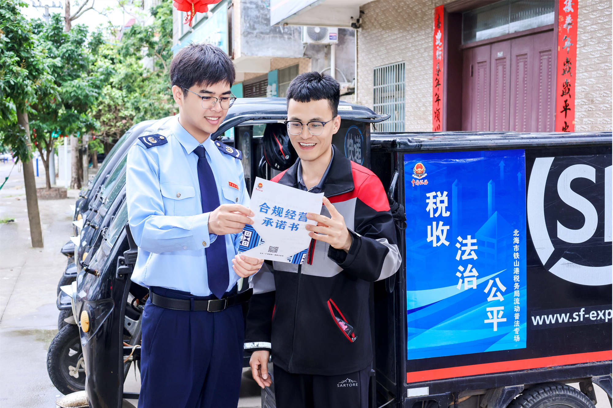 铁山港区税务局联合顺丰速运启动“流动税宣站”项目,依托物流配送网络优势,打通税收普法“最后一公里”,向纳税人靶向推送涉税风险自查清单、合规经营指引等资料,推动法治公平理念走进千家万户。