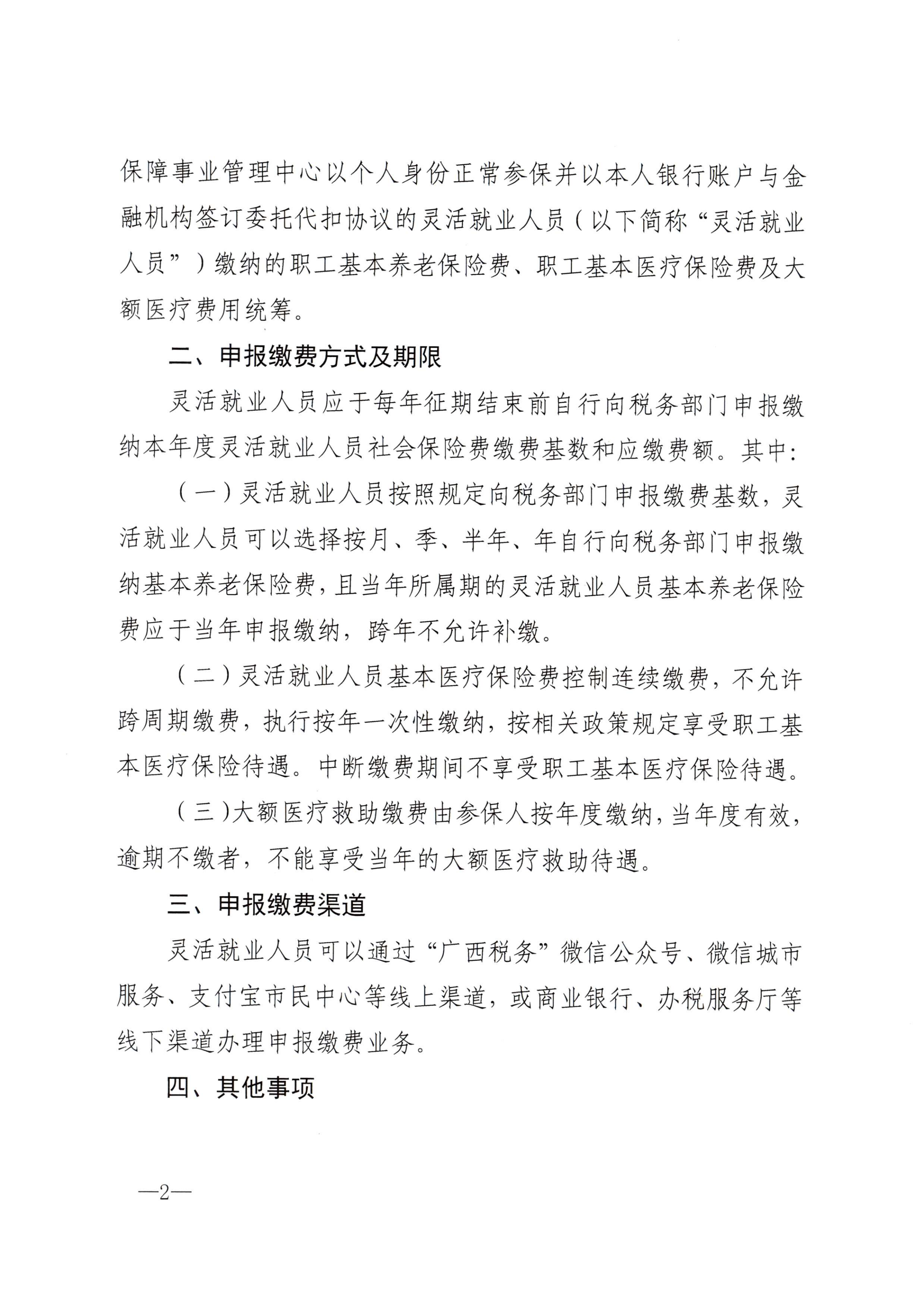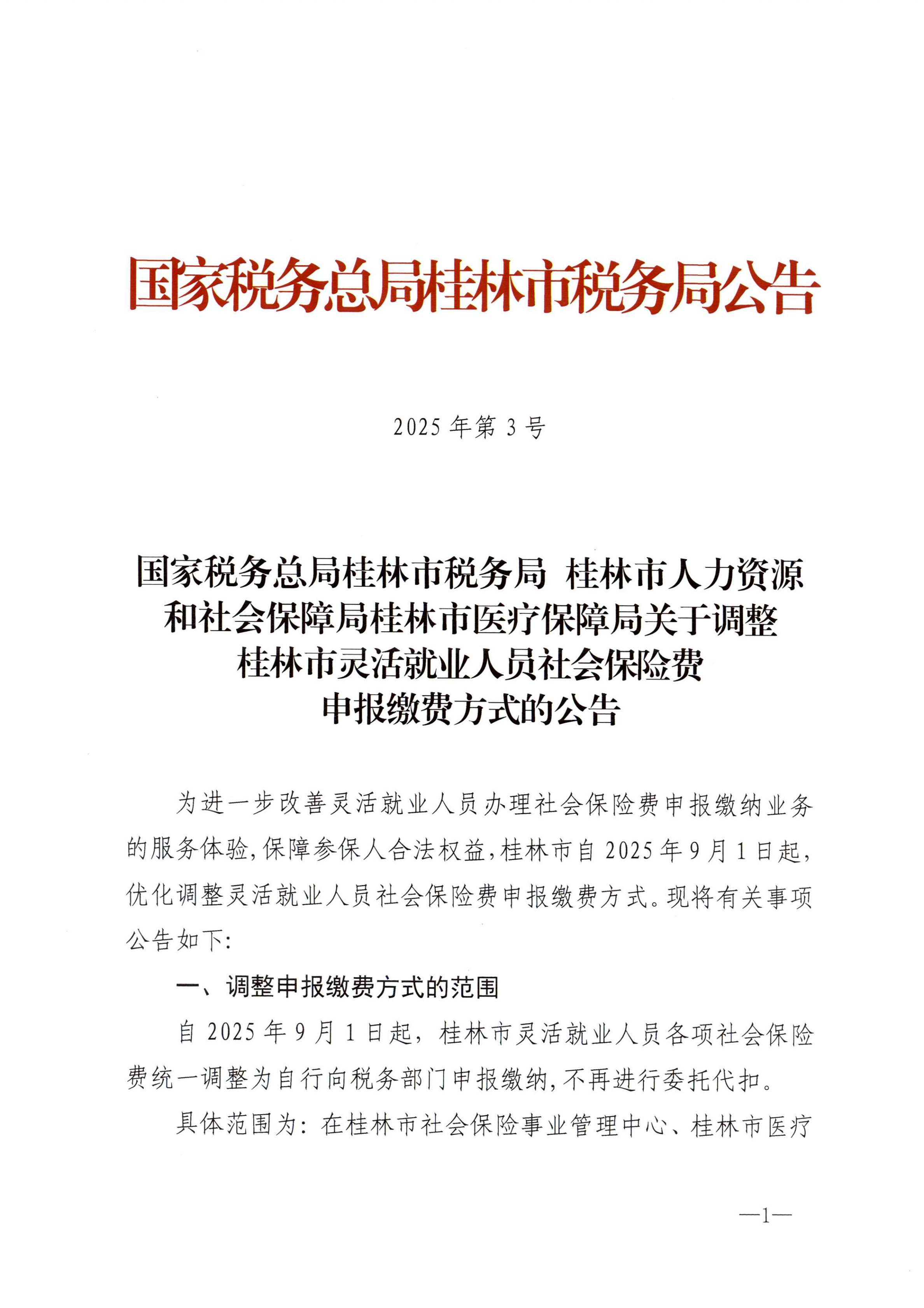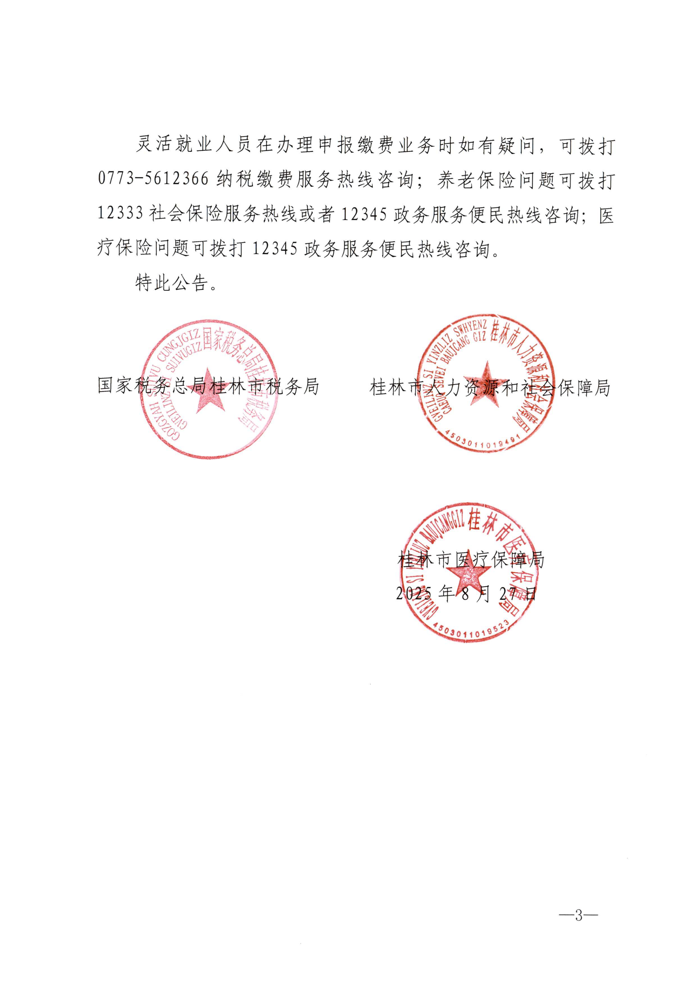 国家税务总局桂林市税务局 桂林市人力资源和社会保障局 桂林市医疗保障局关于调整桂林市灵活就业人员社会保险费申报缴费方式的公告