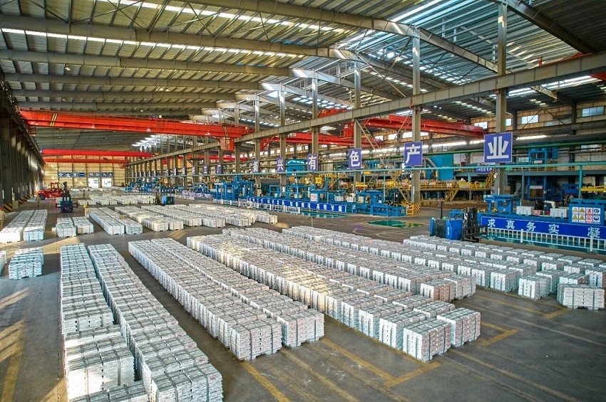 图为河池市南丹县南方有色金属有限责任公司的锌锭生产车间。