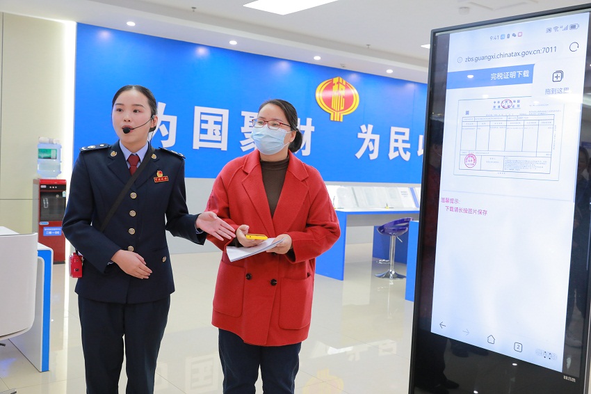 活动现场广西澳都农牧科技有限责任公司财务李女士通过“桂税e点通”微信端反馈电子税务局无法查询到2022年6月之后的完税证明信息,后台工作人员接到信息提醒后立即查询其公司相关信息,随即通过线上指引李女士进行操作并查询补打成功。“现在办税途径和渠道越来越多,无论是在手机上还是电脑上都能快速得到涉税业务指导,聊个天就能搞定,对比之前快捷了许多。”李女士说。