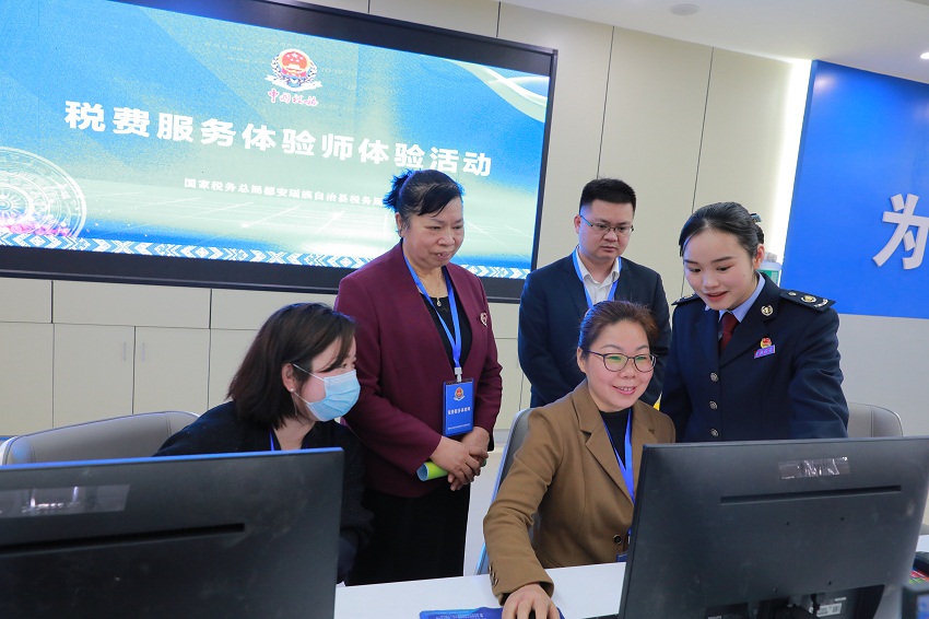 近日,都安县税务局联合都安县工商联组织开展"解涉税难题 促优惠落实"办税厅体验活动。活动以现场会的形式进行,邀请10名当地商会、企业代表化身“税费服务体验师”,全流程操作、“零距离”体验,切身感受办税服务的“台前幕后”,对“新”服务谈感受,为税务部门进一步优化税收服务、提升办税缴费体验建言献策。