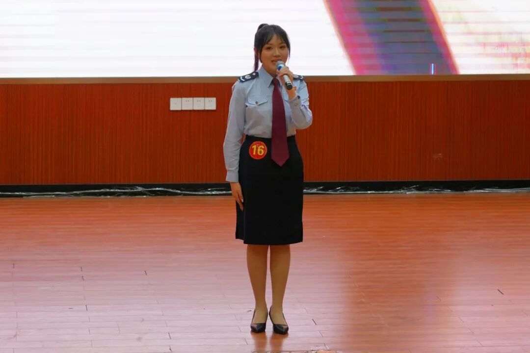 比赛中,杨茜茜紧扣“担当有我 奋进新征程”主题,立足税收岗位,以鲜活的事例、真挚的情感,分享了税务干部在落实减税降费政策、优化纳税服务、助力乡村振兴中的生动实践。她提到:“作为税务人,我们既是政策的执行者,更是服务的践行者。从‘春风行动’到‘枫桥式’税务分局建设,从便民办税到智慧税务升级,每一项工作都凝聚着税务人的责任与担当。”她的演讲引发了现场观众的共鸣,赢得了阵阵掌声。
