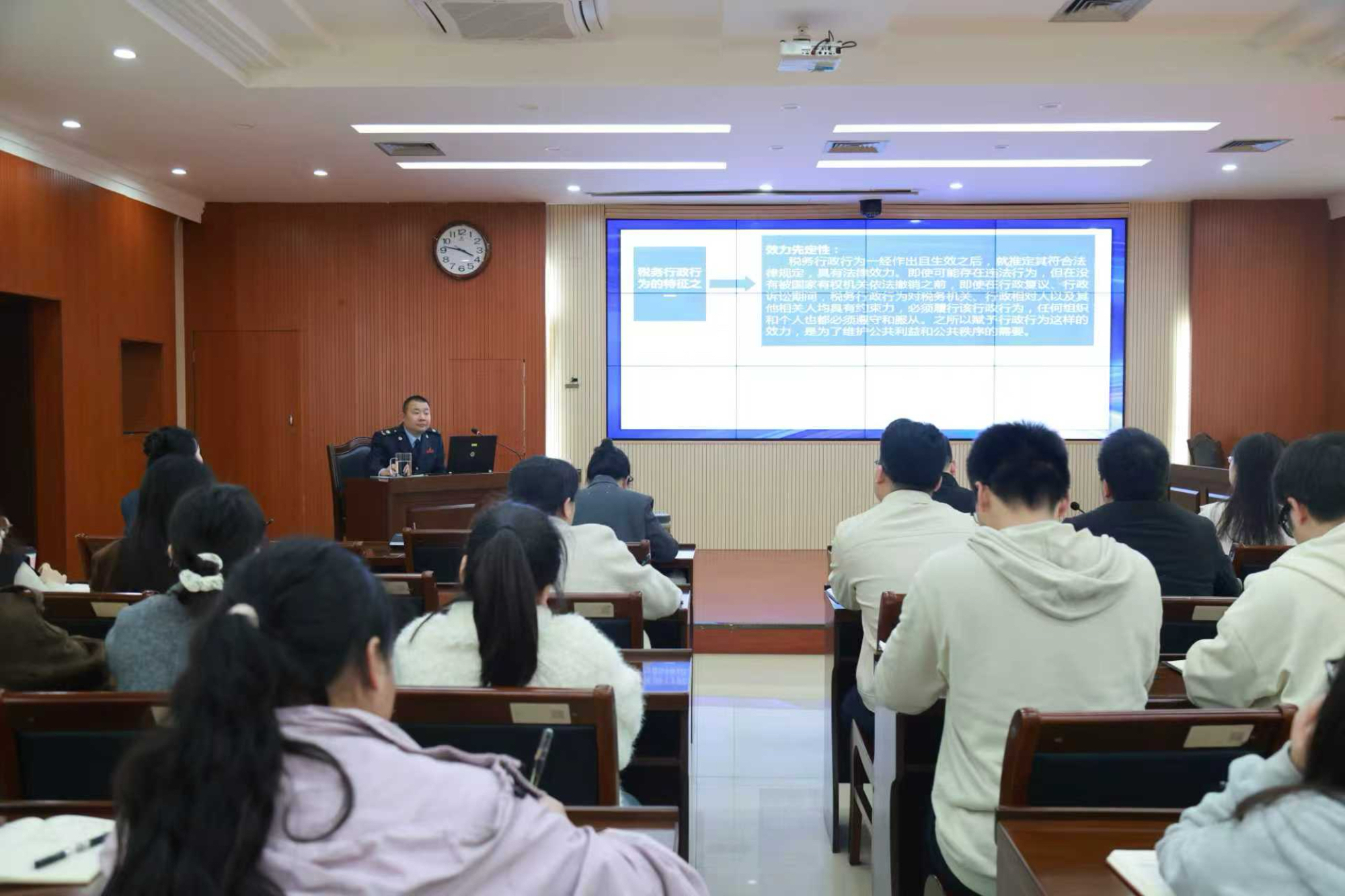 活动聚焦税务行政执法核心工作,以“理论解读+案例剖析+实务指导”的模式,紧扣税务行政执法工作实际,精准解读最新税收行政执法相关法律文件,深入剖析典型执法案例,将理论知识与实践操作紧密结合,针对日常税务工作中高频出现的执法程序、证据采集、文书规范、风险防控等常见问题,进行细致讲解与深度剖析,让青年干部直观清晰地掌握行政执法核心要点,深刻认识到规范、合规、合法开展行政执法工作的重要性与必要性,切实将法治思维、合规理念根植于心、外化于行。