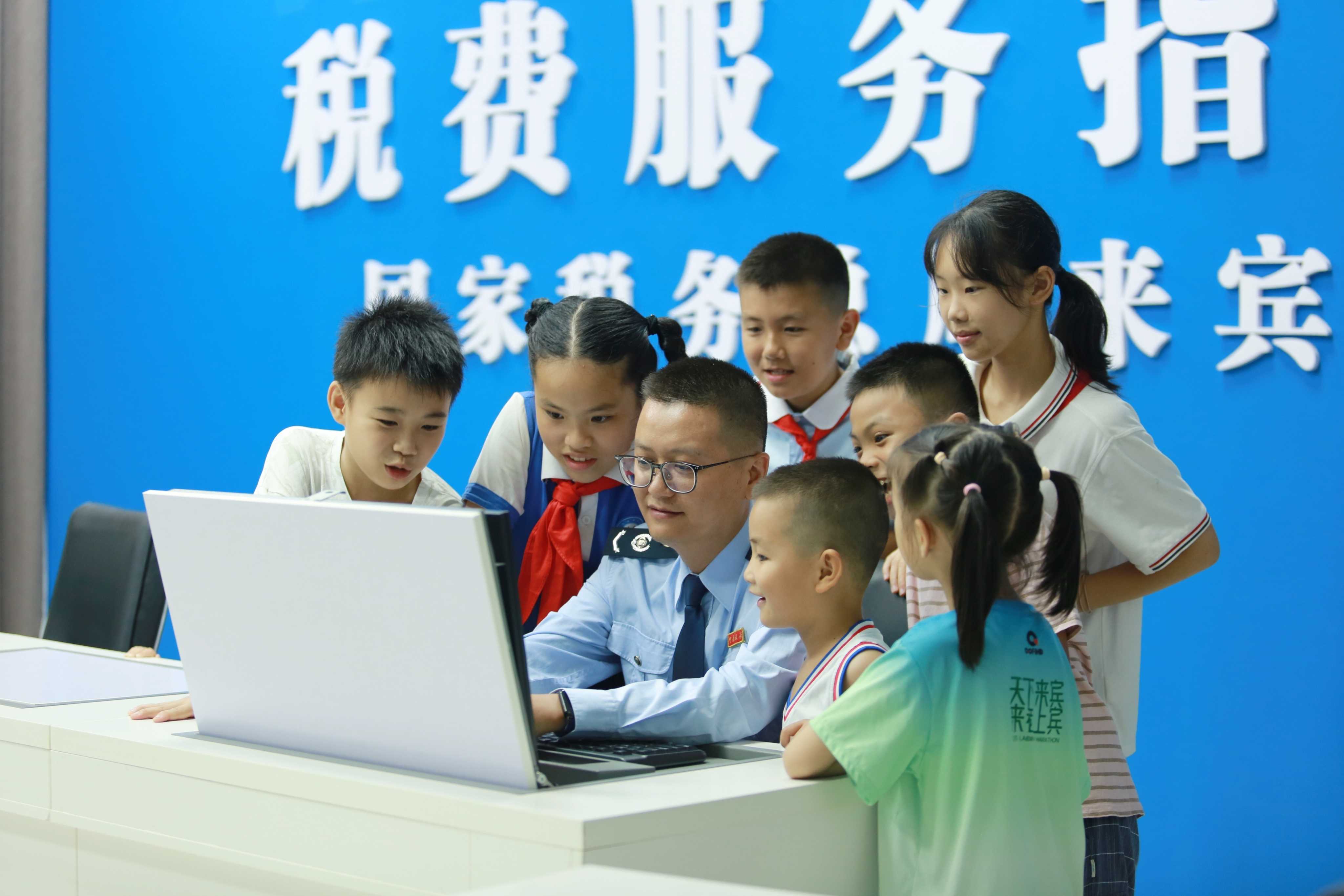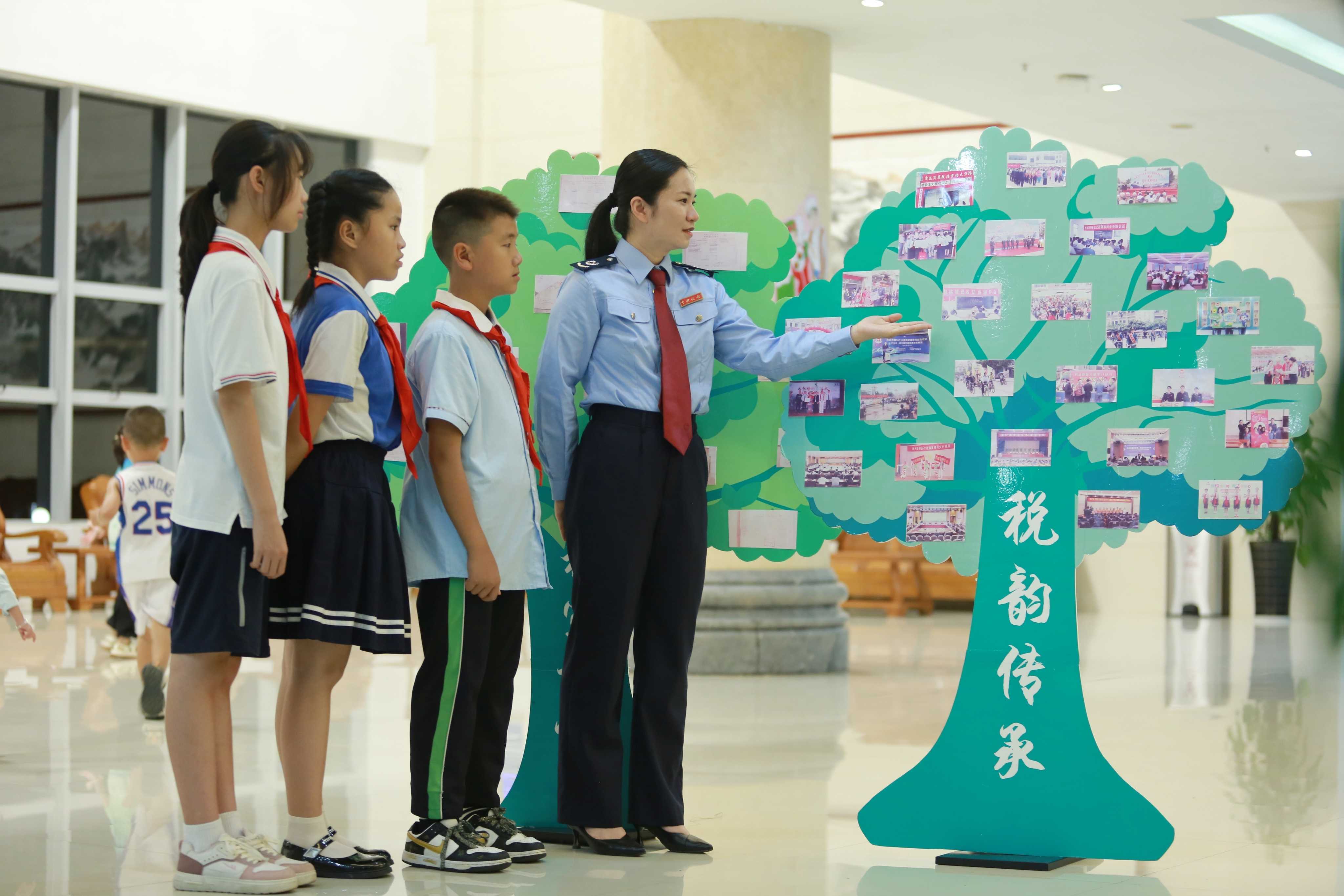 活动现场还播放了短视频《税收七十二变》《税收时空闯关探险记》《诸葛亮的税法密室》等,通过“穿越古今”的剧情设定和“密室解谜”的互动形式,展现税收制度的历史演变与时代价值,悄然将法治意识扎根于孩子们心中。活动特别设置“税法小考官”环节,孩子们踊跃提问:“税收怎么变成学校操场呀?”税务干部一一解答。