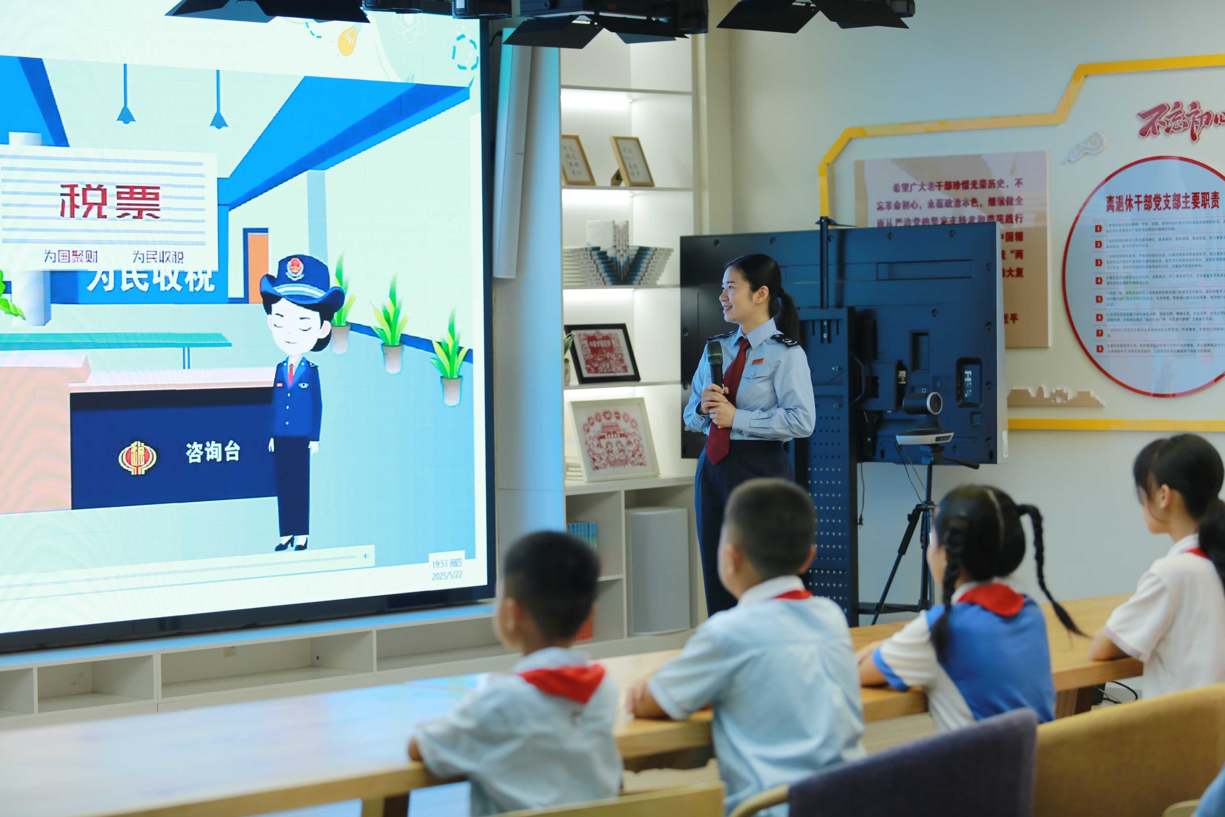 “我的压岁钱要交税吗?”在法治教育课堂,税务干部化身“普法老师”,以《民法典》为切入点,结合日常生活场景,用童趣语言解析涉税法律知识,将抽象的法规条款转化为“买商品要向商家索要发票”“校园防欺凌指南”等生活化场景,用“小故事+童言童语”解析法律知识,学会维护自身合法权益的方法。