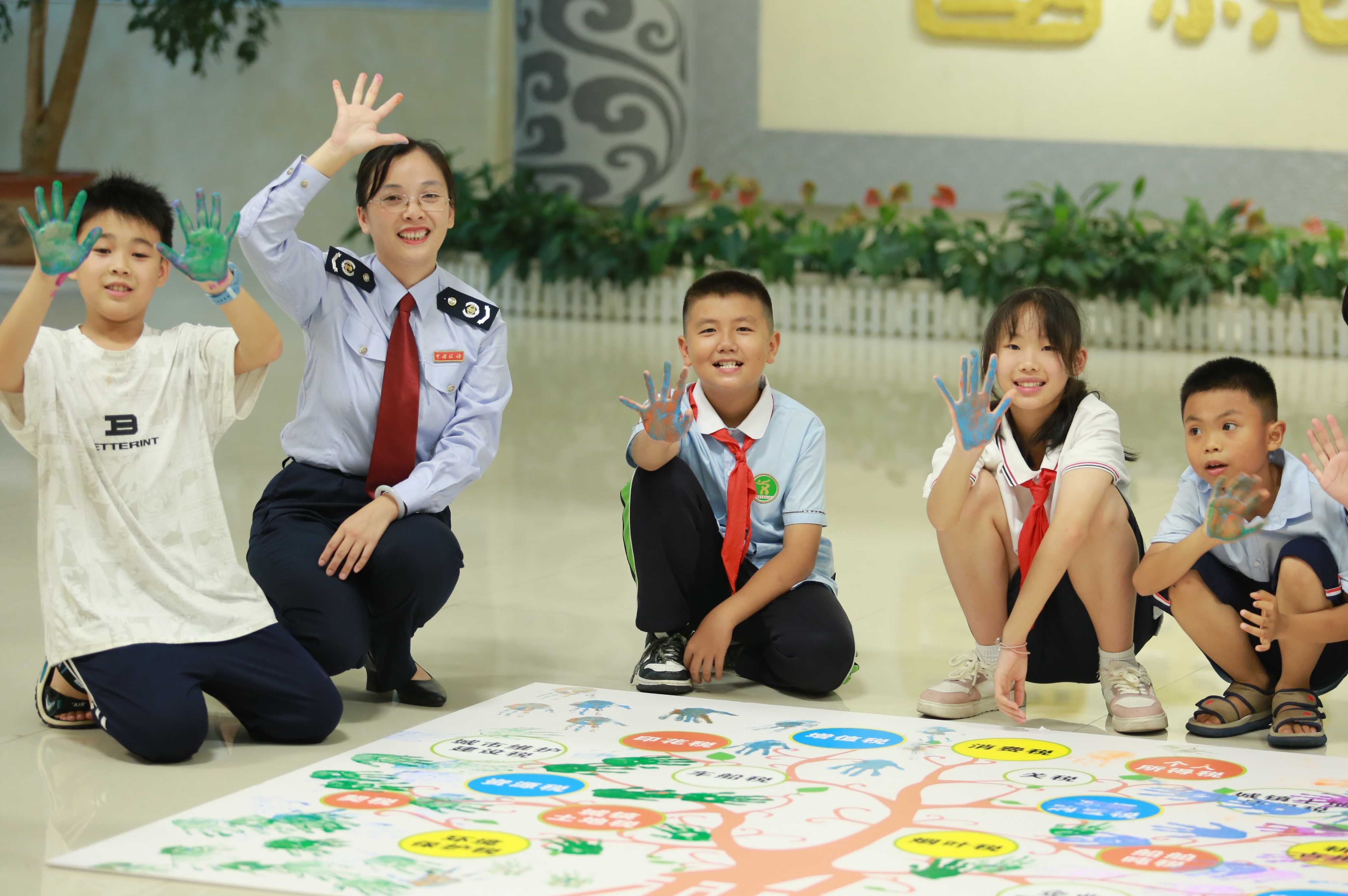 在税收知识科普环节,税务干部以生动的比喻讲解现行十八个税种:“增值税像串联生产的‘接力棒’,环境保护税是守护绿水青山的‘小卫士’……”随后,孩子们将手掌涂满水洗颜料,在画有树干轮廓的展板上按下彩色手印。随着红、黄、绿、紫等各色手印层层叠叠,“税收之树”逐渐枝繁叶茂。“我按的是个人所得税手印,老师说这是每个公民长大后都要参与的‘成长约定’!”来宾市祥和小学五年级学生石将禾认真地说道。