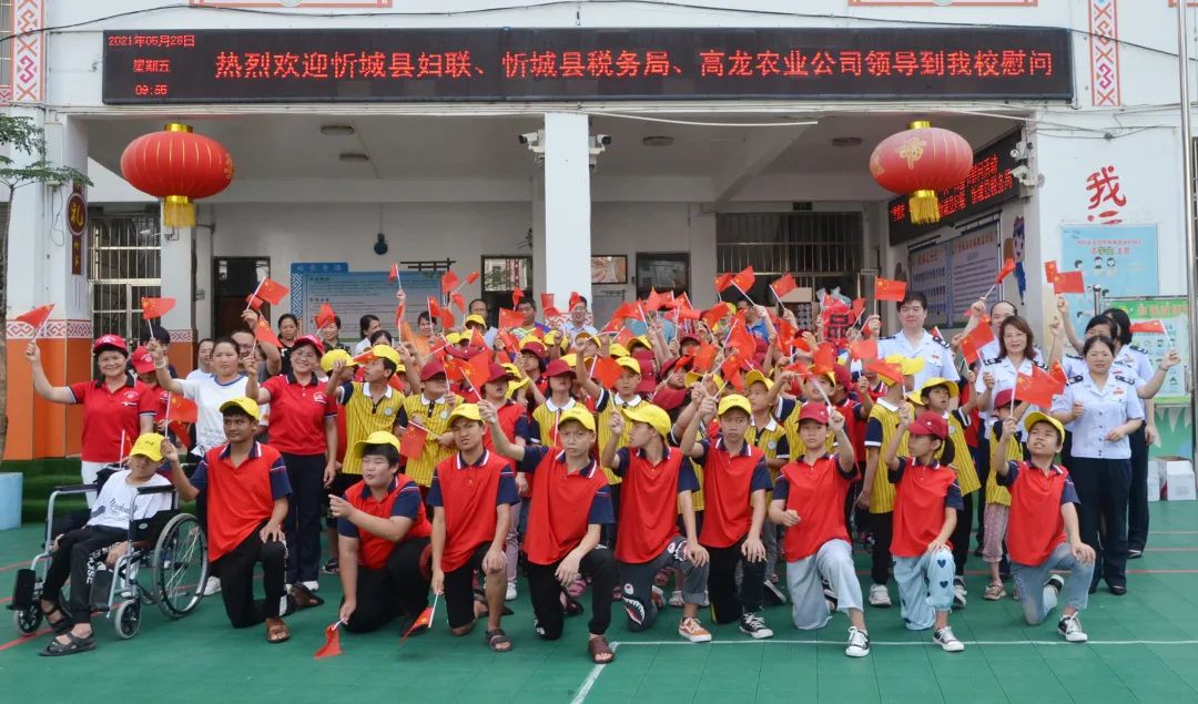 “六一”前夕,国家税务总局忻城县税务局联合忻城县妇联、忻城县高龙农业公司到忻城县特教学校,开展“学党史、颂党恩、跟党走”六一慰问活动。通过与孩子们一起合唱红色歌曲《没有共产党就没有新中国》、共同制作手工作品、为孩子们送上爱心礼物等方式,鼓励孩子们克服困难、树立信心、快乐生活。