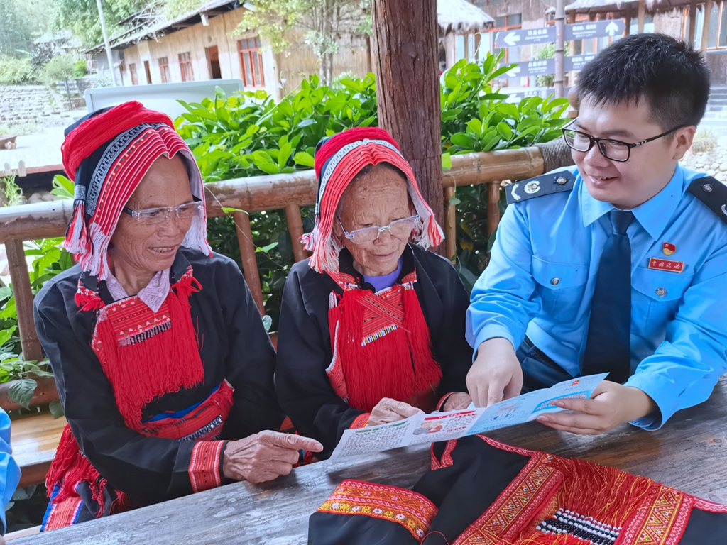 今年以来,国家税务总局金秀瑶族自治县税务局以税收宣传为抓手,把最新最实用的税费知识送到老百姓身边,在普及税法、讲解政策的过程中彰显为民办实事的税务担当。图为该局“瑶都税务志愿服务队”深入长侗乡古占屯,为当地瑶族群众讲政策、解疑惑,以实际行动促进民族团结。