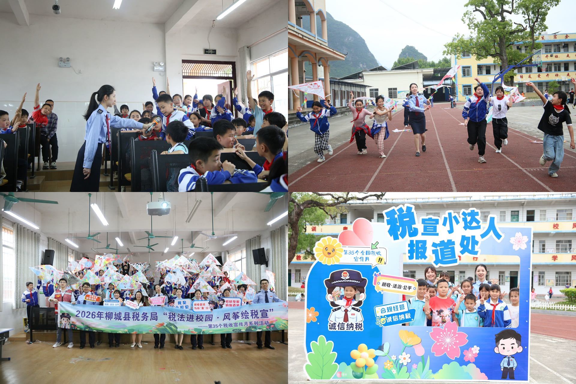 4月7日,柳城局走进冲脉镇中心小学,举办“税法进校园·风筝绘税宣”主题活动。活动设置税法微课堂、知识问答、手绘税收主题风筝等环节。