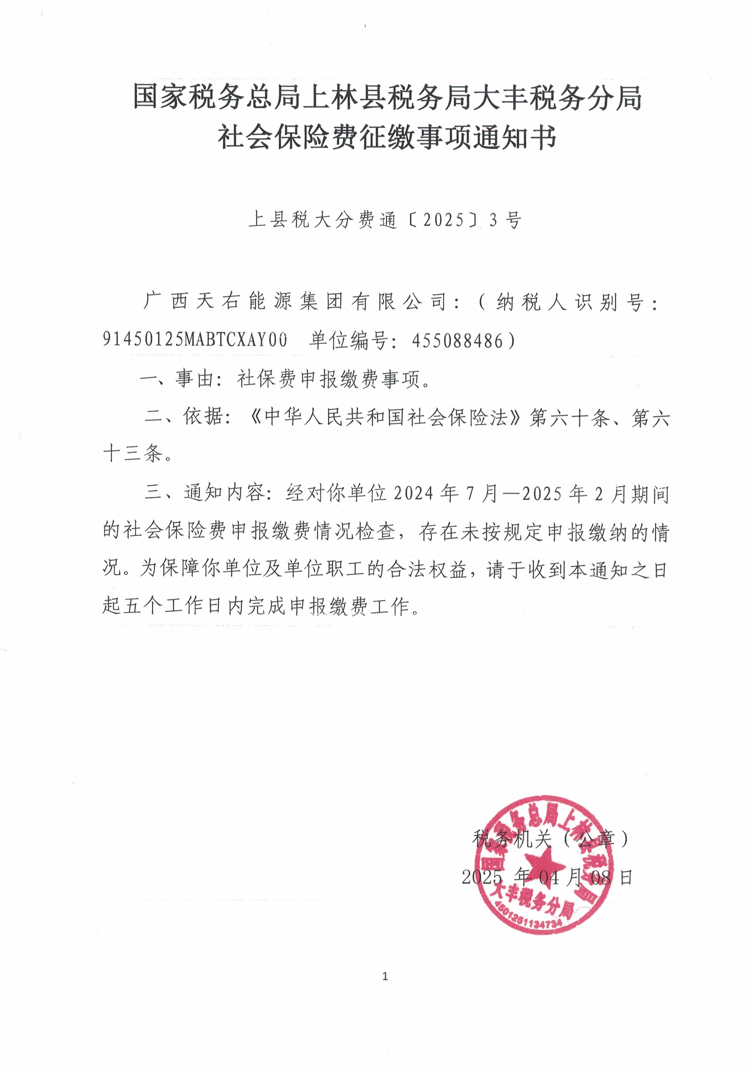 广西天右能源集团有限公司:(纳税人识别号:91450125MABTCXAY00 单位编号:455088486)