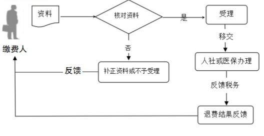 6.自税务部门受理后2个工作日内移交退费资料至同级医保部门,异地退费可采取邮寄或电子邮箱方式传递给退费地税务部门,税务部门再移交至同级医保部门。
