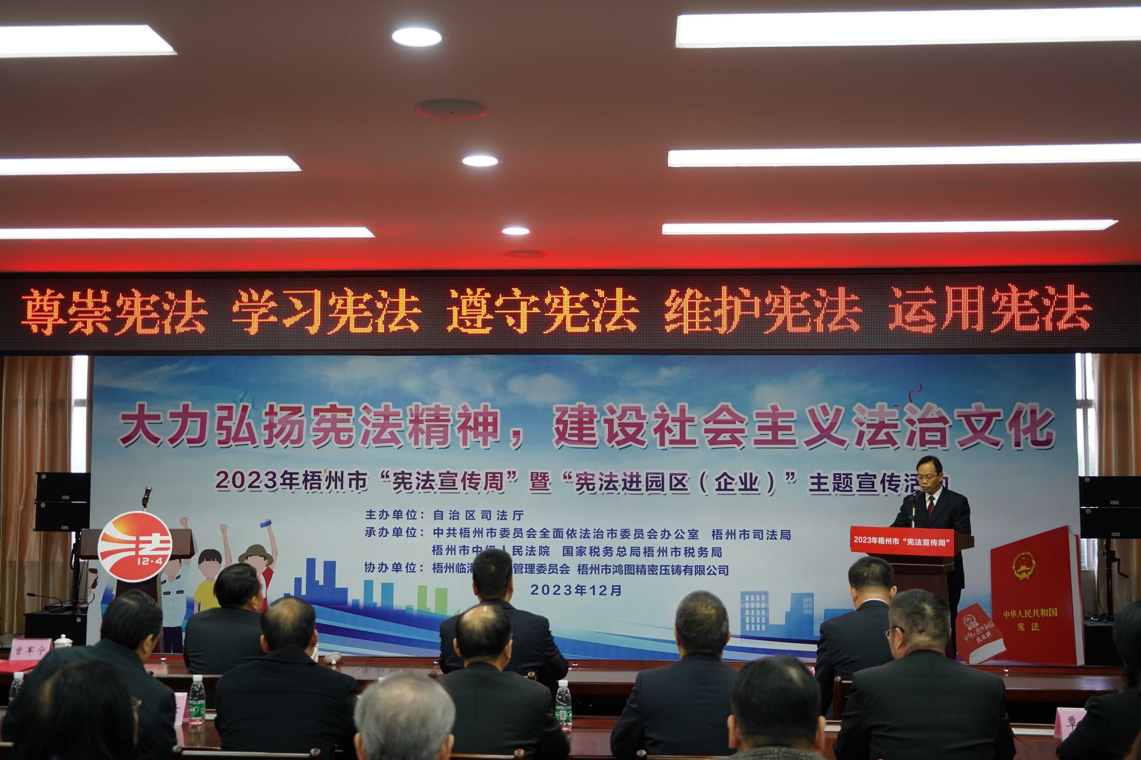 今年12月4日是第十个国家宪法日,12月1日至12月7日也是我国第六个“宪法宣传周”,为更好地增强纳税人缴费人的法治意识和法治观念,维护宪法权威,弘扬宪法精神,近日,国家税务总局梧州市税务局积极响应号召,组织青年干部走进梧州临港经济区开展2023年梧州“宪法宣传周”暨“宪法进园区(企业)”主题宣传活动。