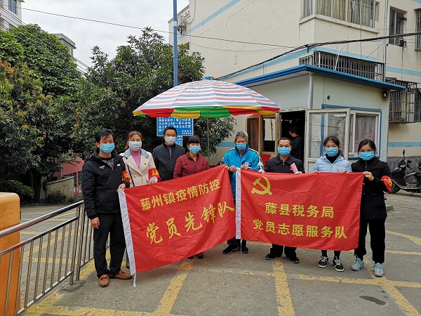 自疫情防控阻击战全面打响以来,藤县税务局广大党员干部扛责在肩、冲锋在前,积极投身防疫战线。近日,藤县税务局组织党员志愿者会同藤州镇城南社区街道办工作人员一起到雷堂冲小区开展疫情防控工作。在疫情防控中,该局党员干部发挥不怕累不怕苦精神,你拿消毒剂来消毒垃圾桶,我拿宣传单来做好群众疫情防控宣传,并劝散聚众聊天群众等,大家做得认真细致,更好保障小区群众生命安全和身体健康。该局党员以实际行动积极投身到这场看不见硝烟的战役中来,大家坚定信心、同舟共济、科学防治、精准施策,为坚决打赢疫情防控阻击战贡献税务力量!(肖景武)