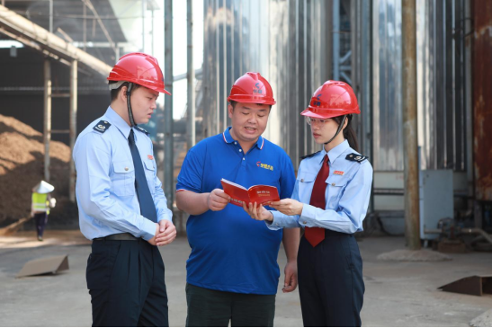 国家税务总局贵港市覃塘区税务局聚焦产业发展,主动上门服务,精准对接企业涉税需求。图为该局税务干部在广西华晟木业有限公司了解生产经营情况,讲解税费政策,为企业发展添力。(陈颖文,施天平摄)