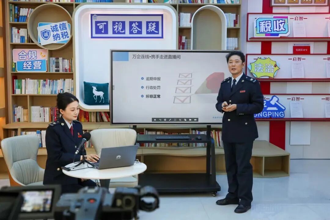 在河北,秦皇岛市税务局紧扣“税收・法治・公平”主题,举办“万企连线·携手走进直播间”活动,直播连线纳税人缴费人为其解答政策困惑、实操难题,普及税费知识。