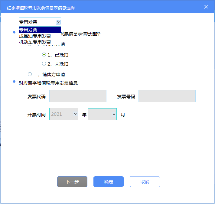 答:开具类型为机动车开具时只能选择到机动车类红字发票信息表,普通的红字发票信息表不显示,需要请下游企业将该张信息表撤销,然后选择“机动车专用发票”重新开具信息表并上传。