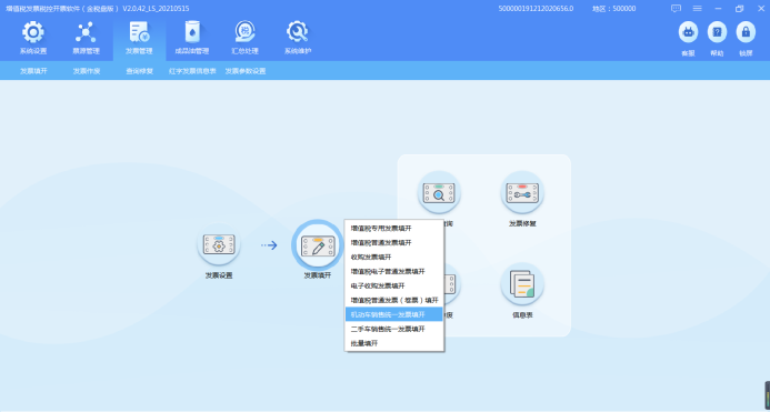 【第一步】在发票管理模块,点击发票填开,选择增值税专用发票,如图6所示。