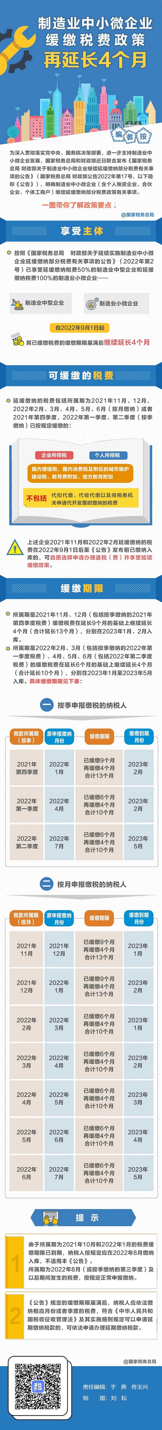 @制造业中小微企业:缓缴税费政策再延长!一图读懂政策要点
