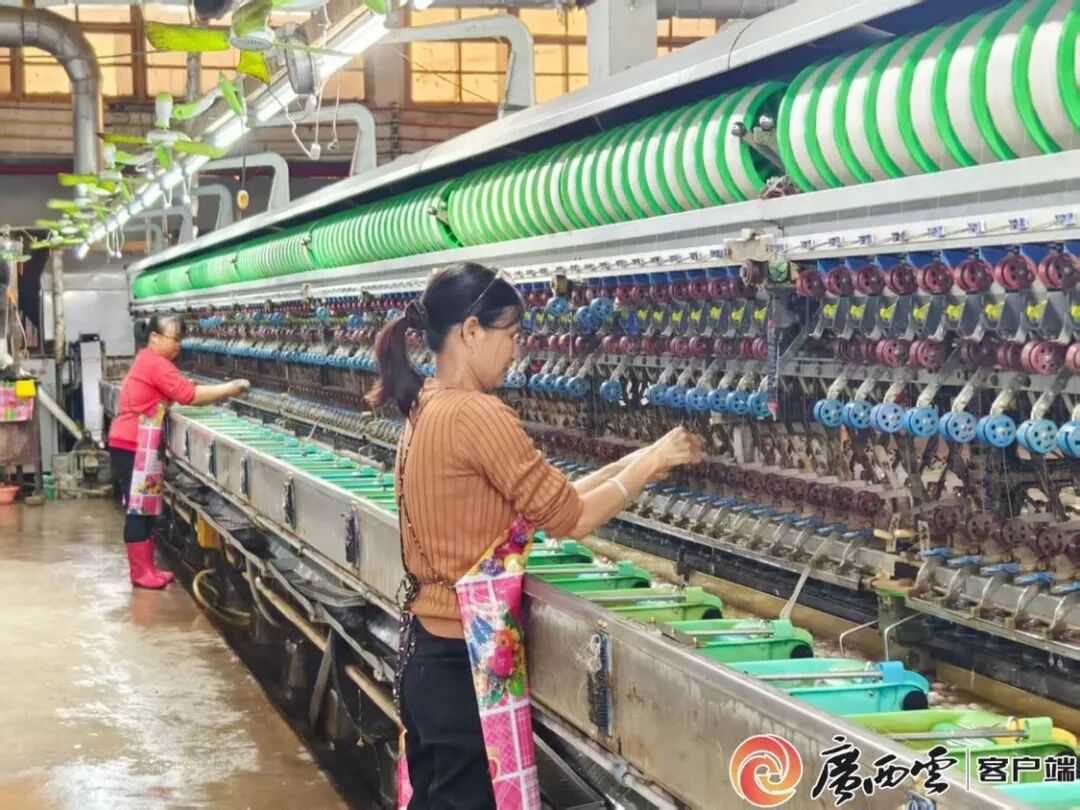 陆川联昌茧丝有限公司生产车间,工人正在操作流水线。